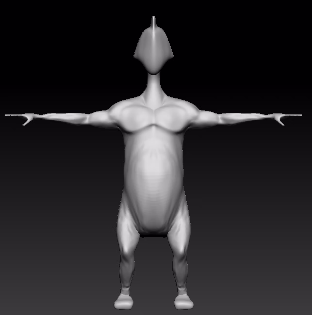 As we were figuring this out, I added some skin and muscle detail to the alien, trying to change the shape and make it look less of a bird. I tried changing the curves and bringing the hips in, similar to a rat or kangaroo.