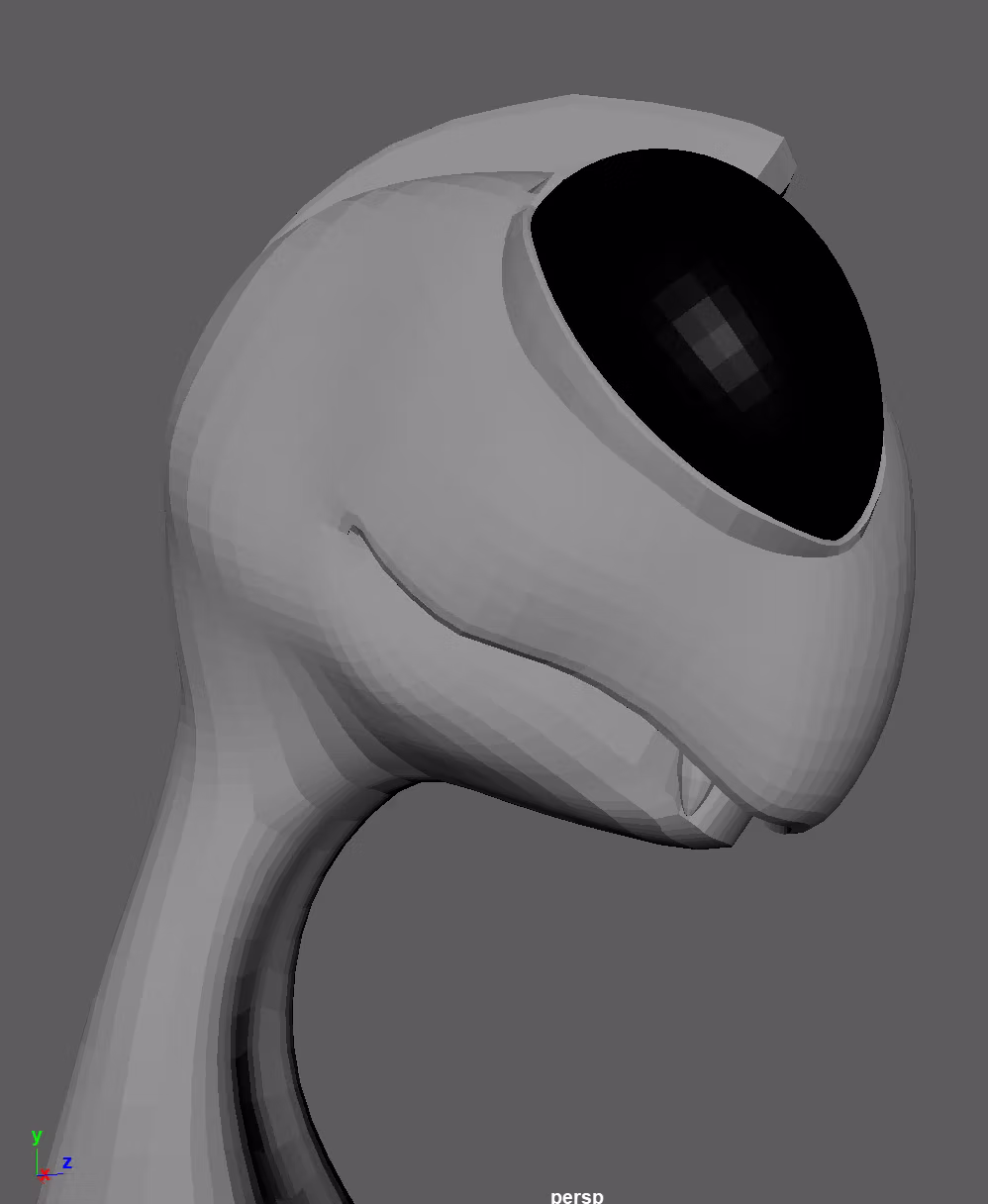 I also made sure everything worked properly with the alien rig for steps moving forward. I wanted to make sure it would be good for the rest of the pipeline so I skinned the eyes and touched up the weight painting. I had some trouble reimporting the rig after updating it with the mouth, but I figured out that I had to unbind and recopy the weights to the cage and then the problem was fixed.