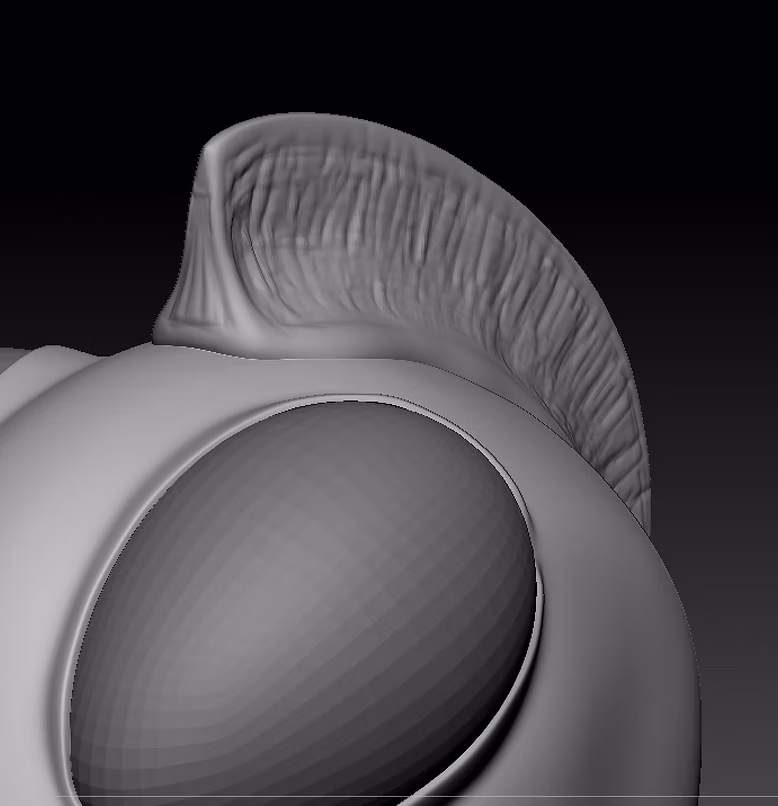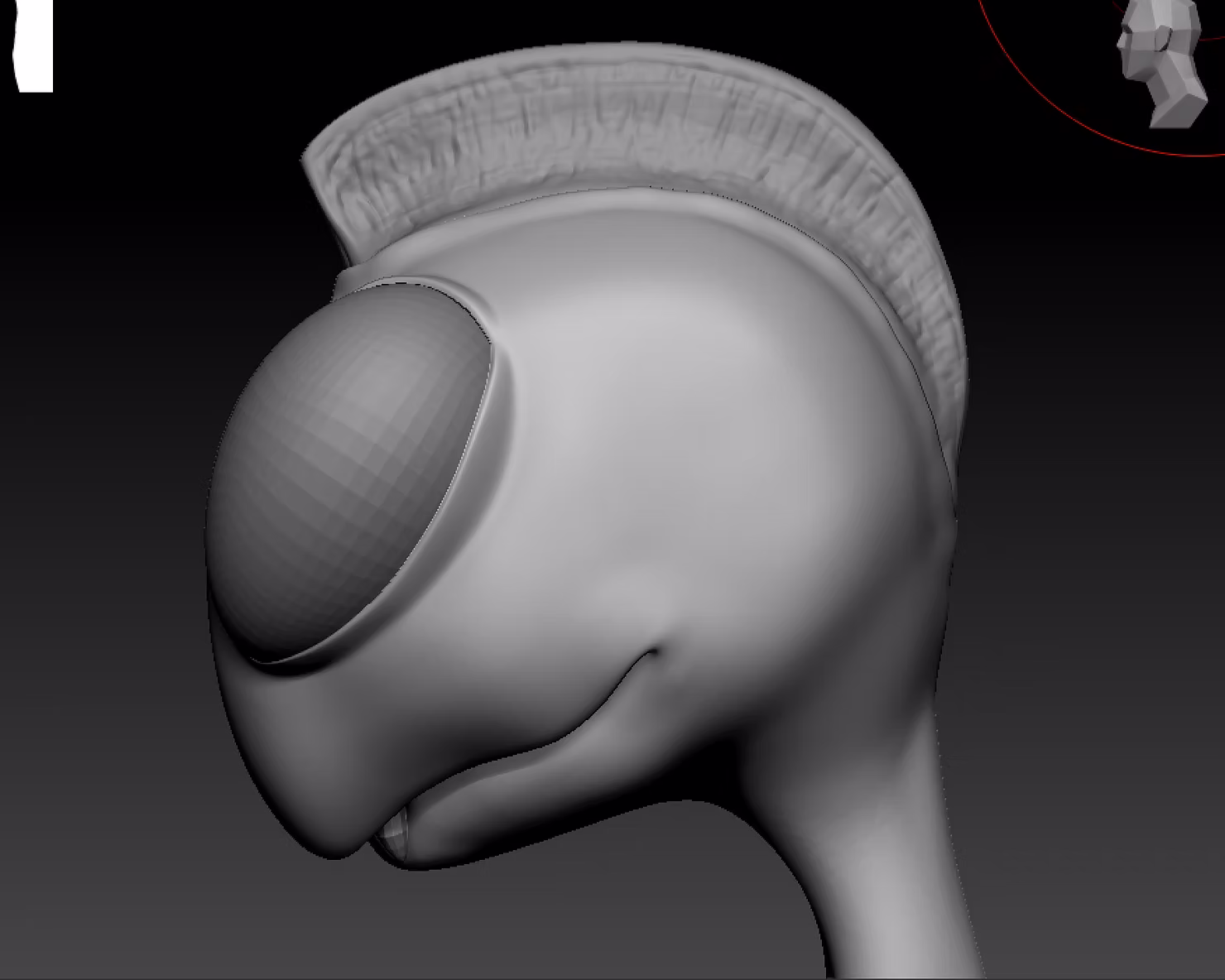 We decided to ask one of the other teams members for help on our character, to get the right shapes and geometry for rigging. After that, I switched to the alien and started working on details of the crest and the face. I tried to make the face more like our original concept, however we liked the simplicity and cuteness of our previous face, so we decided to define it better (the eyelids, the mouth edge, and blending the crest better with the head).