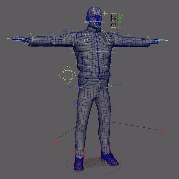 Once that was done, I worked on our main character rig. I'm currently going through and painting the weights as well as setting up the face rig.