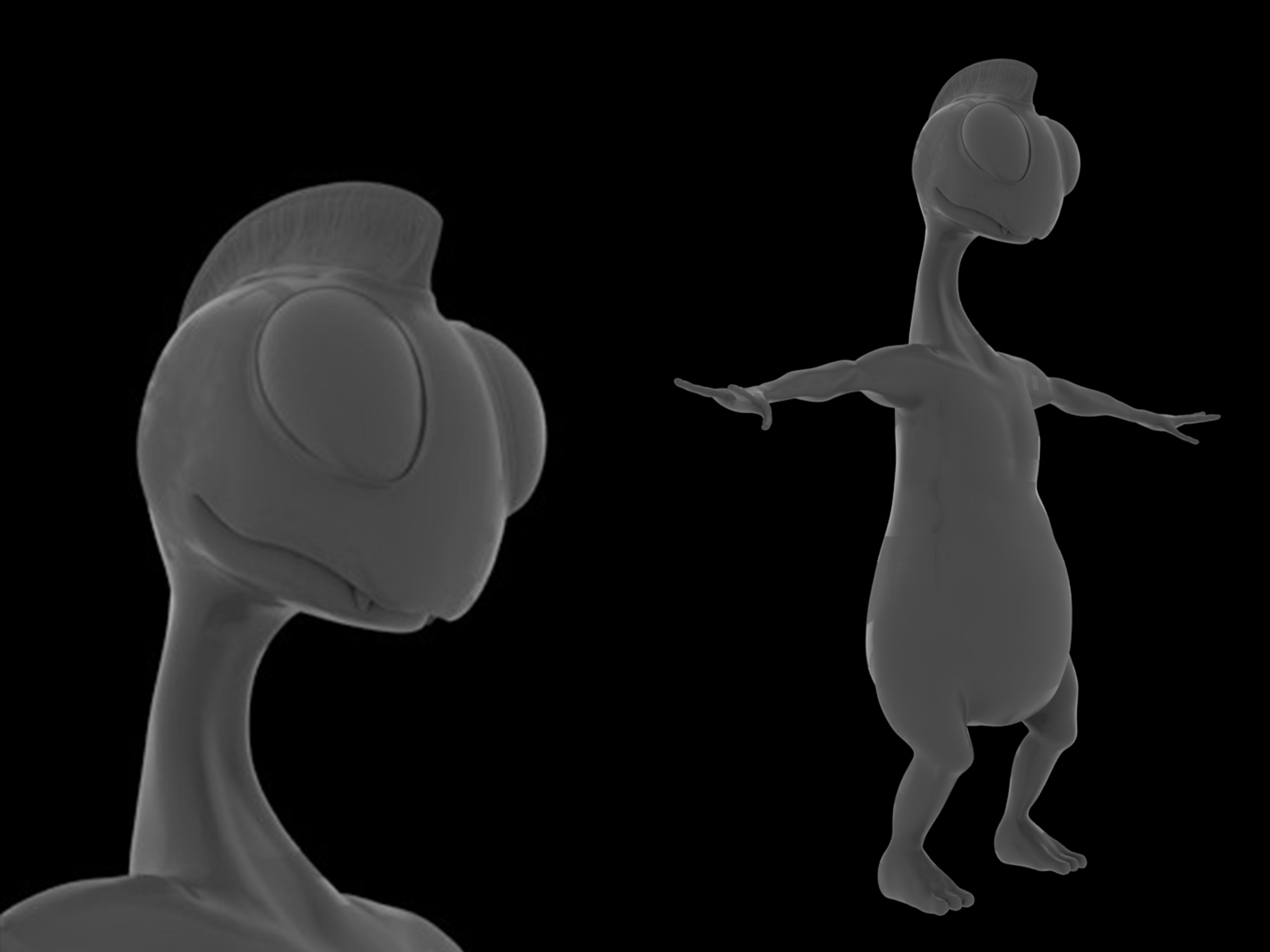 My primary contribution to Bathroom Stall Galactica was designing, modeling, sculpting, retopologizing, and rigging the alien character. I also handled integrating outfit and textures from other team members into the rig. This project represents my character design and 3D modeling expertise in collaborative film production. Credit to Bathroom Stall Galactica team.
